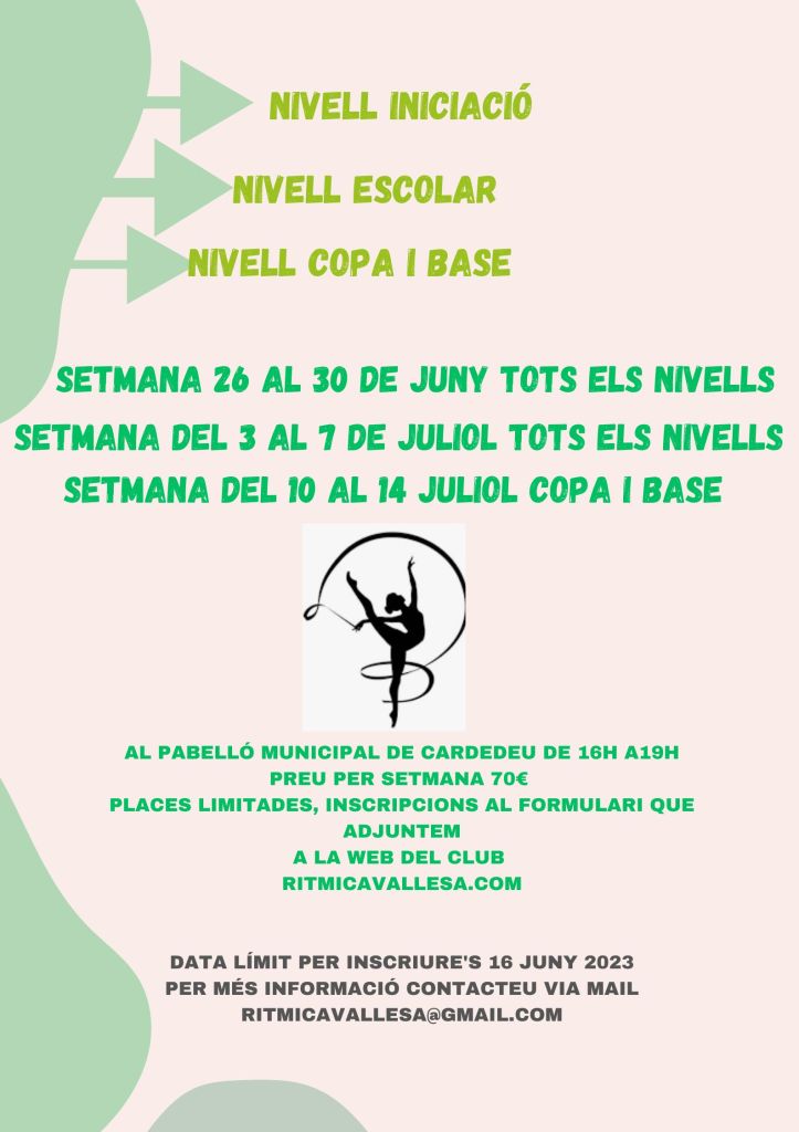 Els horaris i setmanes els teniu a continuació, però en cas de qualsevol dubte contacteu amb nosaltres per mail a ritmicavallesa@gmail.com, us respondrem aviat.